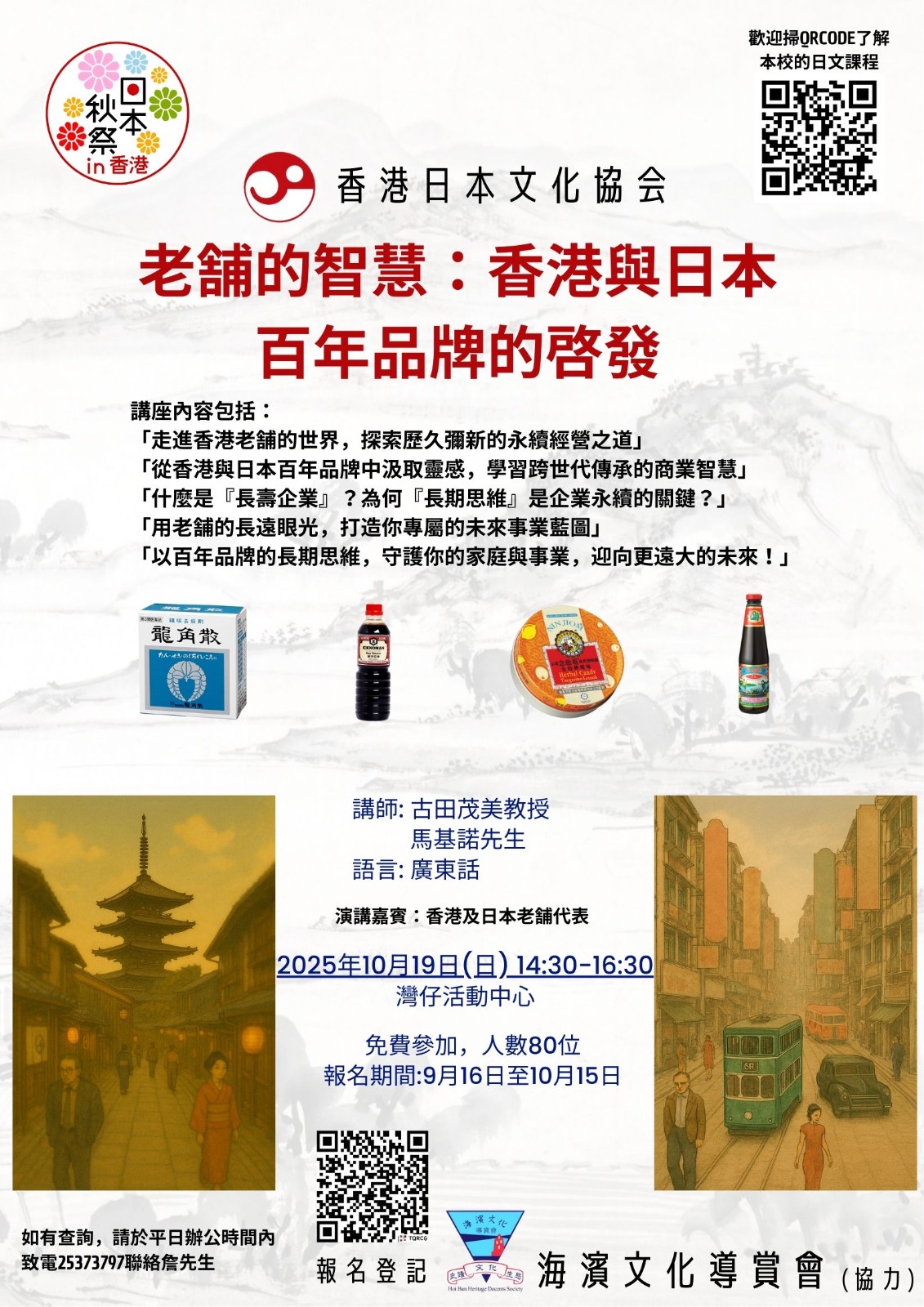 The Japan Society of Hong Kong has been endeavoring to offer a completely new aspect of Japanese culture, the‘SHINISE’老舗to academic scholars, business people and the general public who have a keen interest on Japanese culture. ‘SHINISE’ literally means old store, but by definition, is a company that has developed its 100 years of business succession in Japan. Japan is the world’s No.1 SHINISE concentrated nation. The seminar will disclose the secrets of the business longevity of Japanese SHINISE. It will also discuss the famous‘SHINISE’business in Hong Kong.