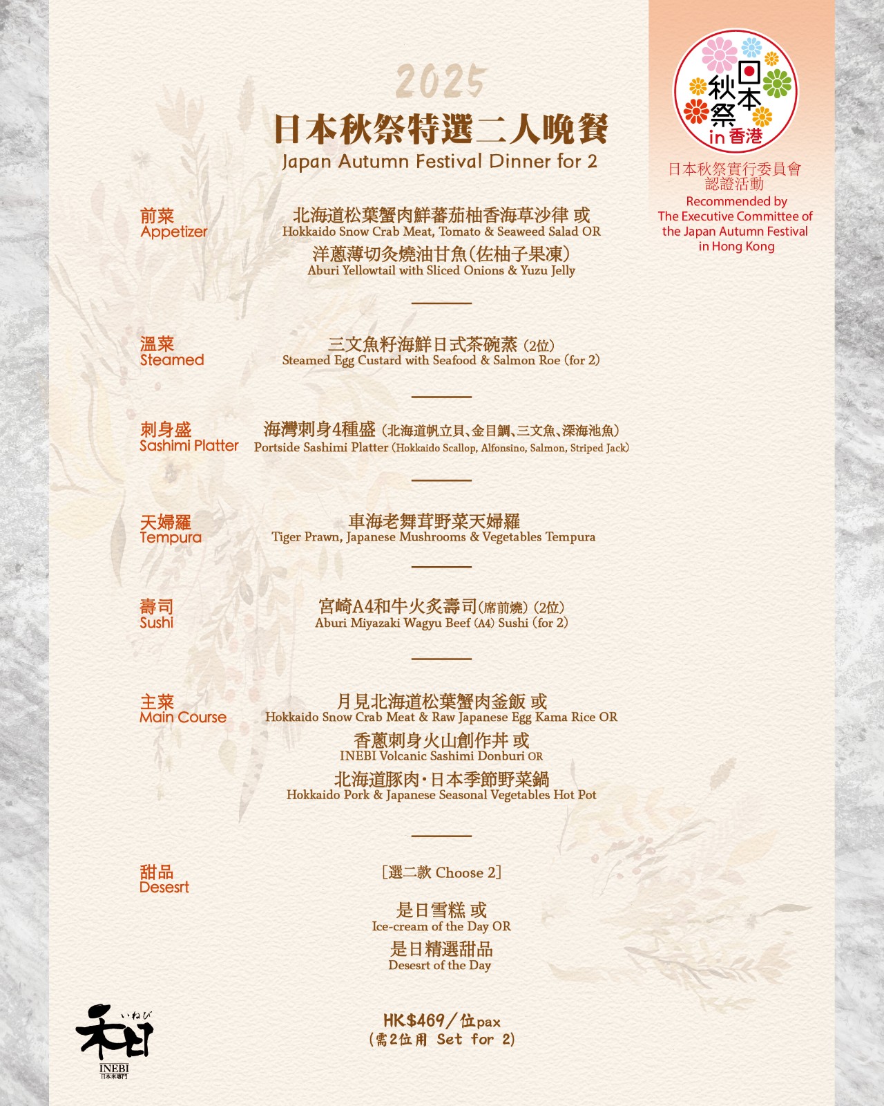 Japan Autumn Festival in Hong Kong 2025 > Search > 日本秋祭特選二人晚餐