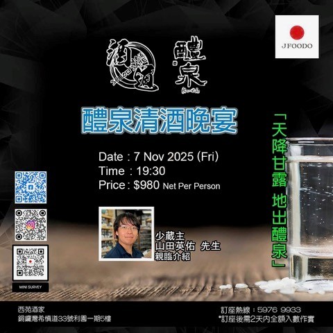 2025年日本秋祭in香港 > 検索 > 醴泉× JFOODO X酒道 X西苑酒家 日本酒ペアリングディナー
