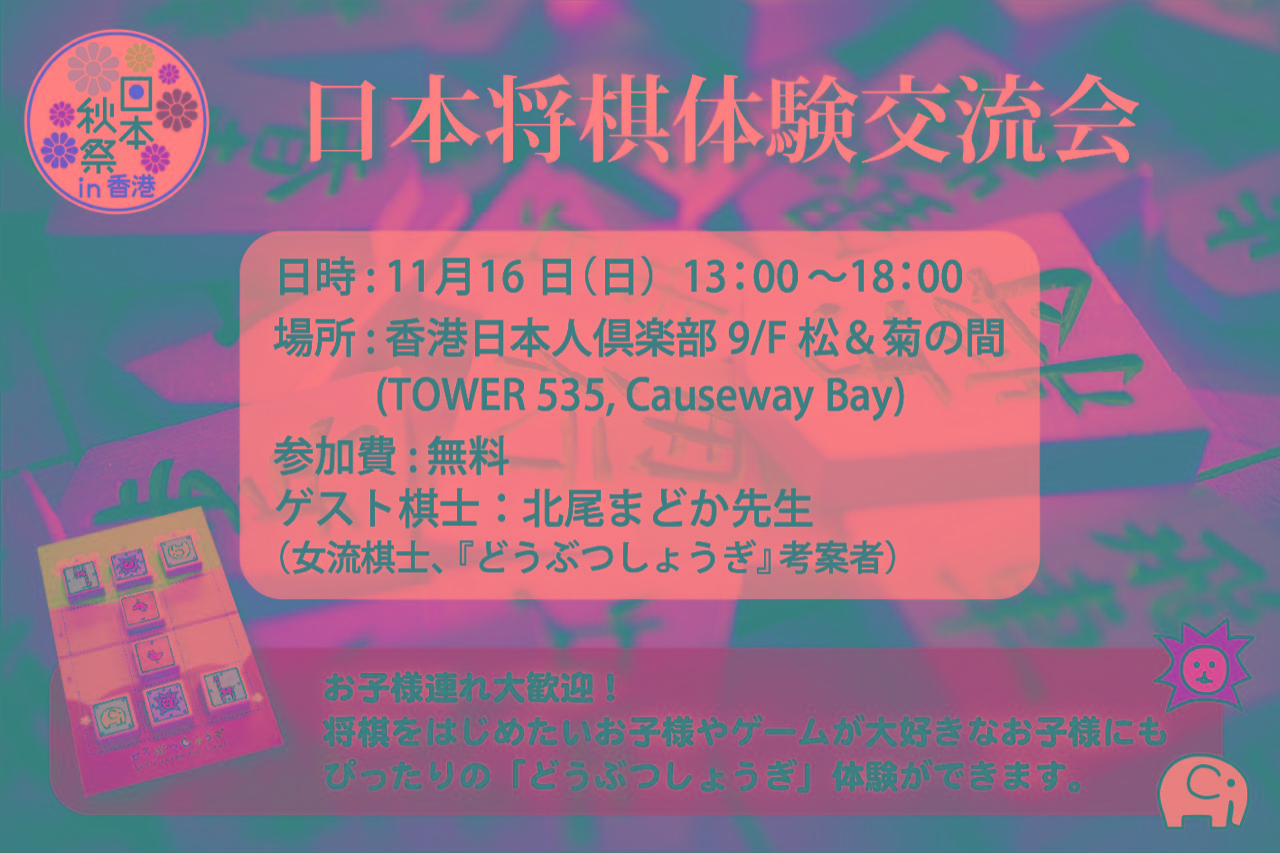 - Shogi, which was introduced from China during the Heian period and has undergone unique evolution in Japan, is widely enjoyed by many people, and we want people living in Hong Kong to experience it broadly.