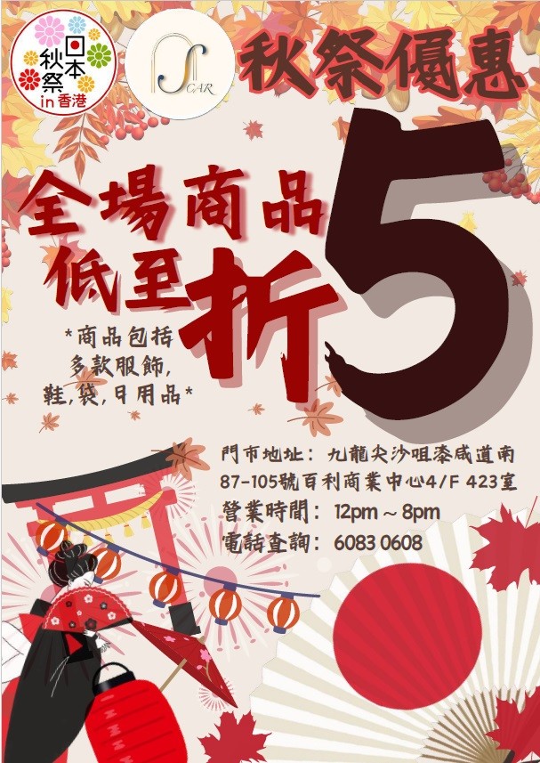 This autumn, Scar is offering an autumn festival-themed promotion to Hong Kong customers with discounts as low as 50% off, promoting items rich in Japanese culture, such as anime cartoon character Chiikawa boutiques, exquisite Kimono with as low as 80% off, and other interesting traditional Japanese products.