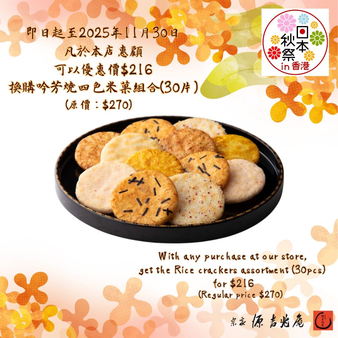 優惠:凡於本店購物,均可以$216換購吟芳燒四色米餅(30片)(原價$270)。